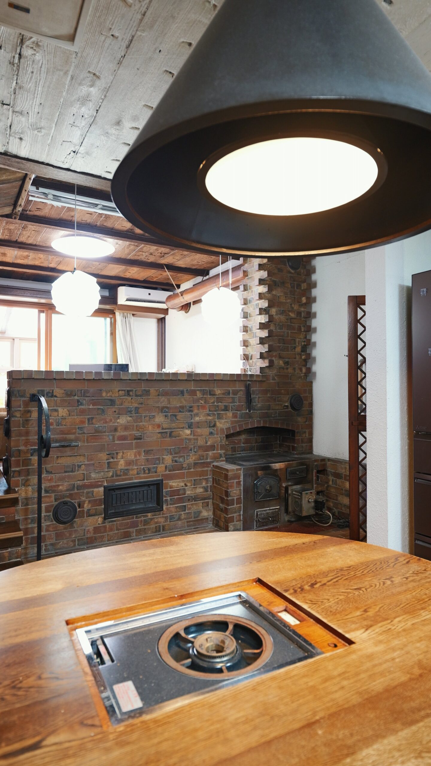 ● ダイニングにはガスコンロ内蔵の特注木製テーブルがあり、換気口直通でお料理を楽しみながらお食事ができます🍽️