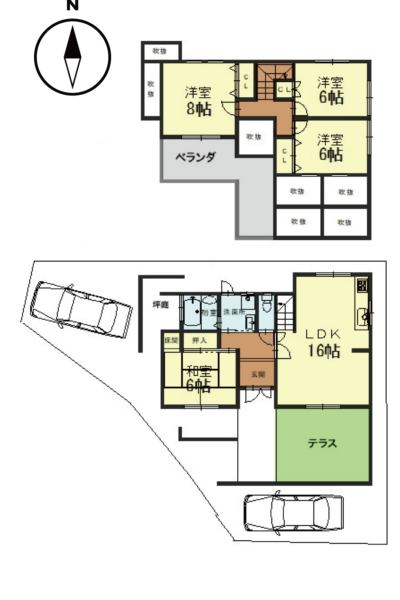 間取り: 4LDK(LDK16帖・和室6帖・洋室8帖・洋室6帖×2)